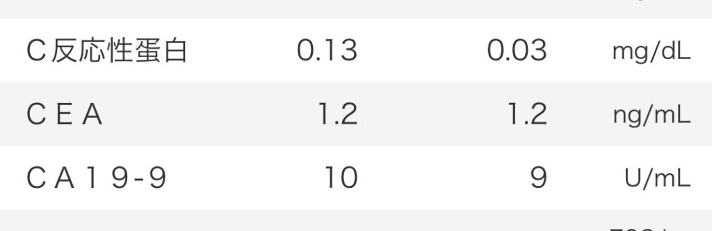腫瘍マーカー二つ共変わりなく、CA19-9に至っては減っている!