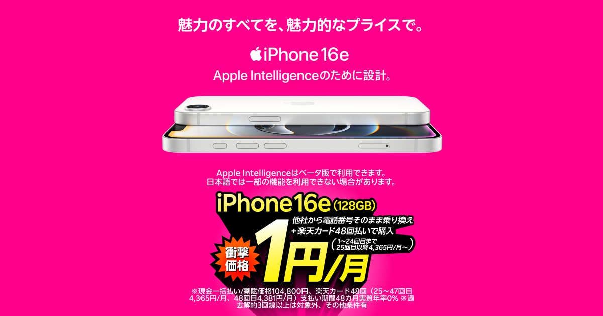 なんとiPhone16eが月額1円(機種代)!