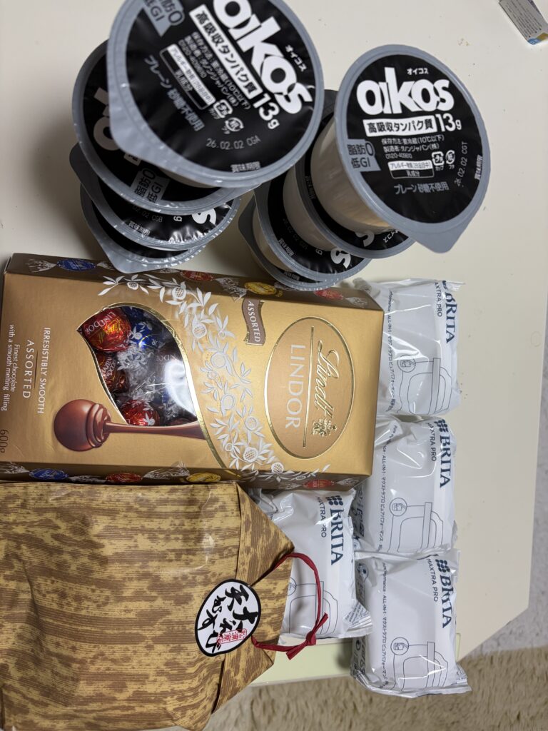 リンツのチョコ・ブリタの浄水カートリッジ・オイコスヨーグルト