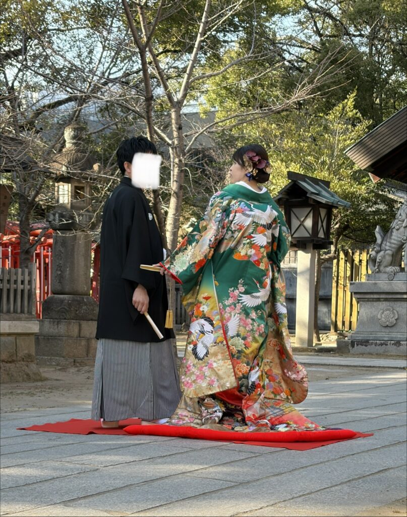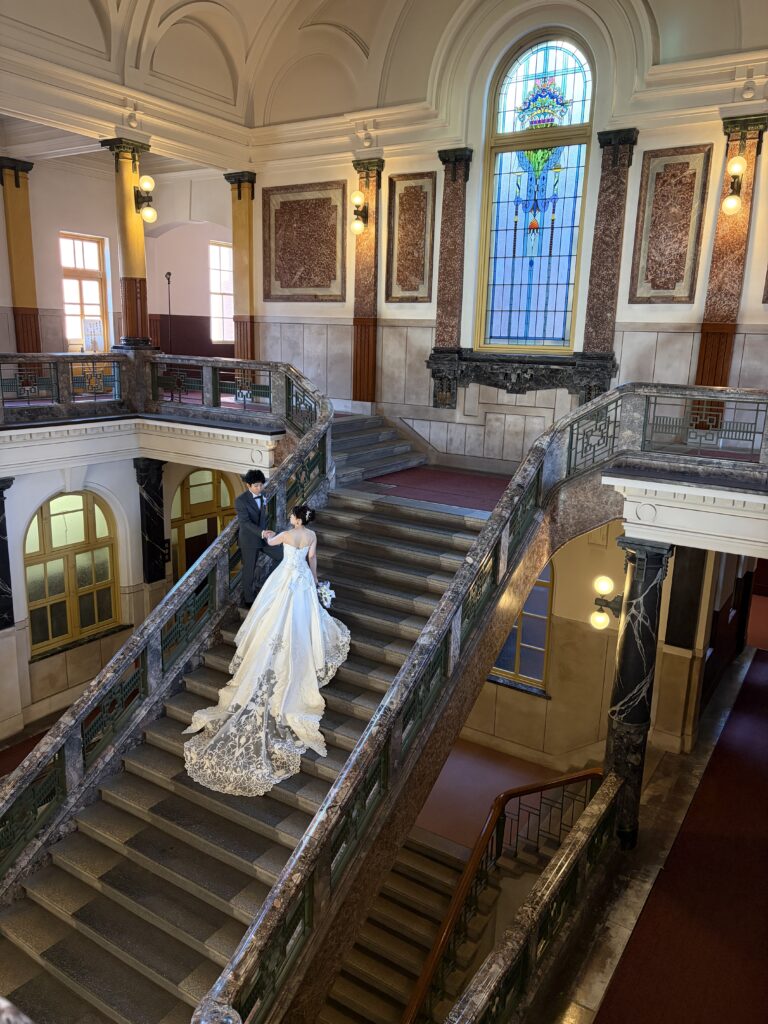 名古屋市政資料館では洋装、その後、那古野神社で和装写真を撮影。