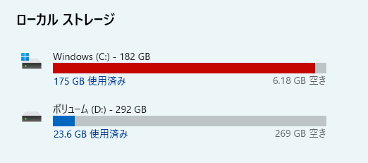 せっかくDドライブが269GBもあるのだからと、自分でインストールする時はなるべくDドライブにしていた。データを保存するだけでは持て余してしまうから。