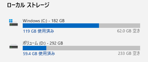 だから余計にDドライブを持て余すことになってしまった。